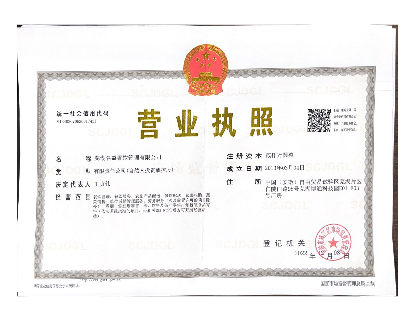 地址:蕪湖市鳩江區(qū)官陡門路98號(hào)博通科技園名益餐飲管理有限公司